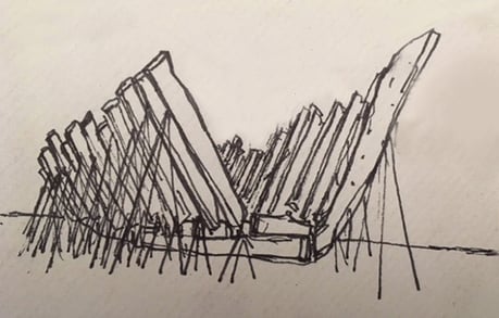 That space of the past –before the city hid the river; earlier, when the pier was still centre and hallmark of a city that started there and limit to a country that ended there-, is now the setting for an hypothetical construction - strictly speaking, of an art installation. It unchains a series of meanings and also enables a peculiar exercise of memory. A structure has been installed in the old Switchyard which seems to be, at first sight, the reconstruction of an ancient ship that, according to the title “Shipwreck”, remained under the river.