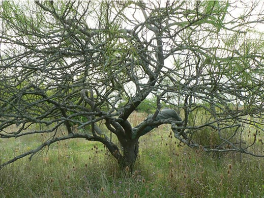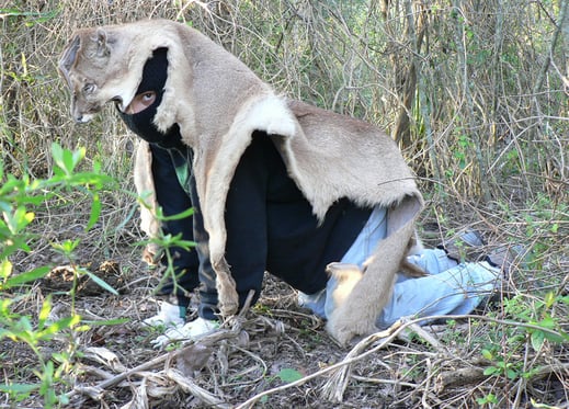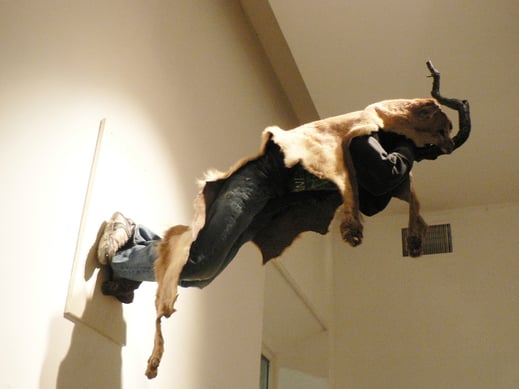Madera, piel de puma, buzo, pantalón, calzado y metal